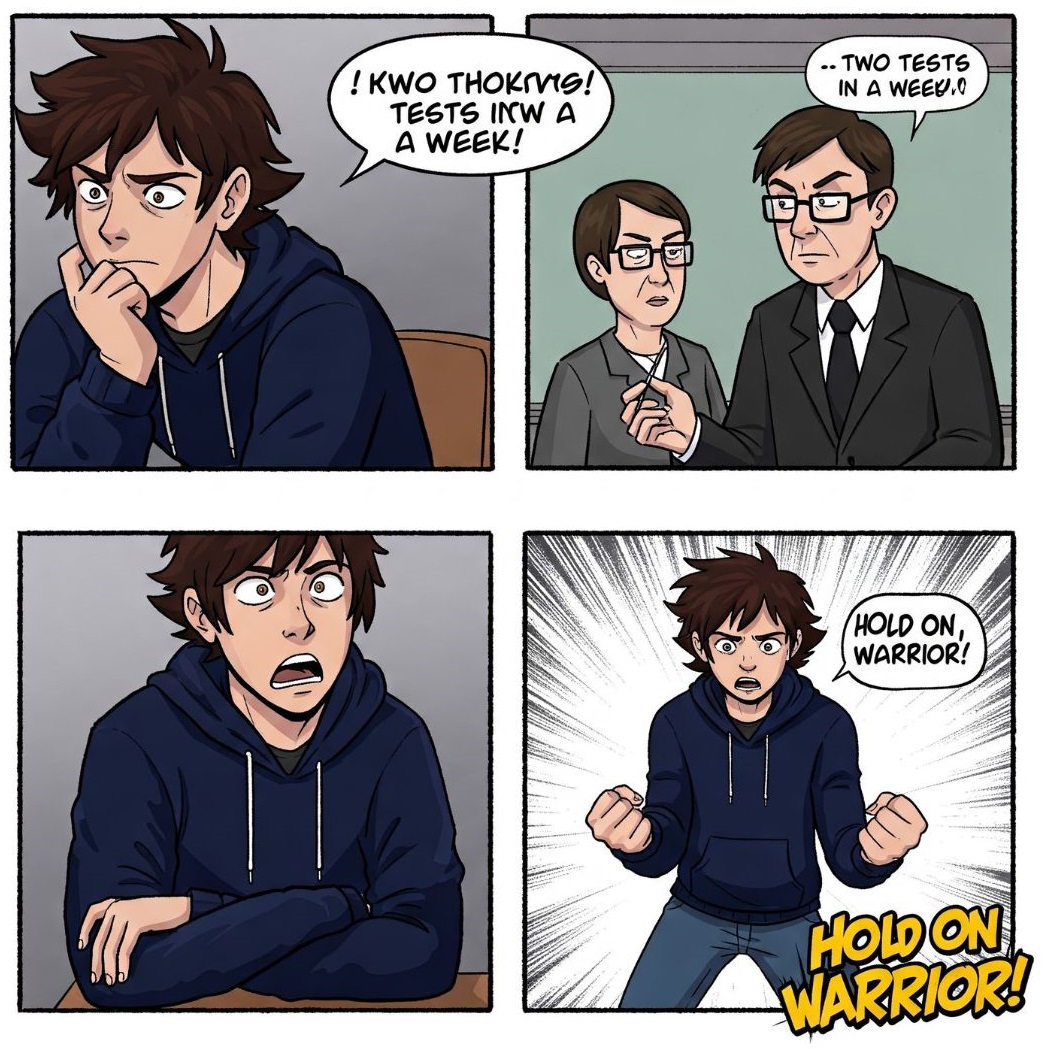 Ти знаєш, що світ жорстокий, але навіть тебе здивує новина, що вчитель вирішив поставити дві контрольні за тиждень. Тримайся, воїн!